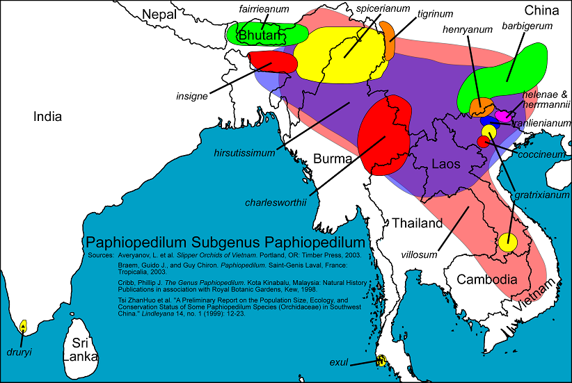 The sources of the info for the distribution of each species [not listed in the image itself] are listed in the individual data sheets. It would be far too confusing to list them all here.