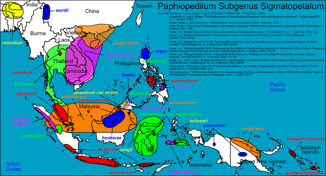 The sources of the info for the distribution of each species [not listed in the image itself] are listed in the individual data sheets. It would be far too confusing to list them all here.